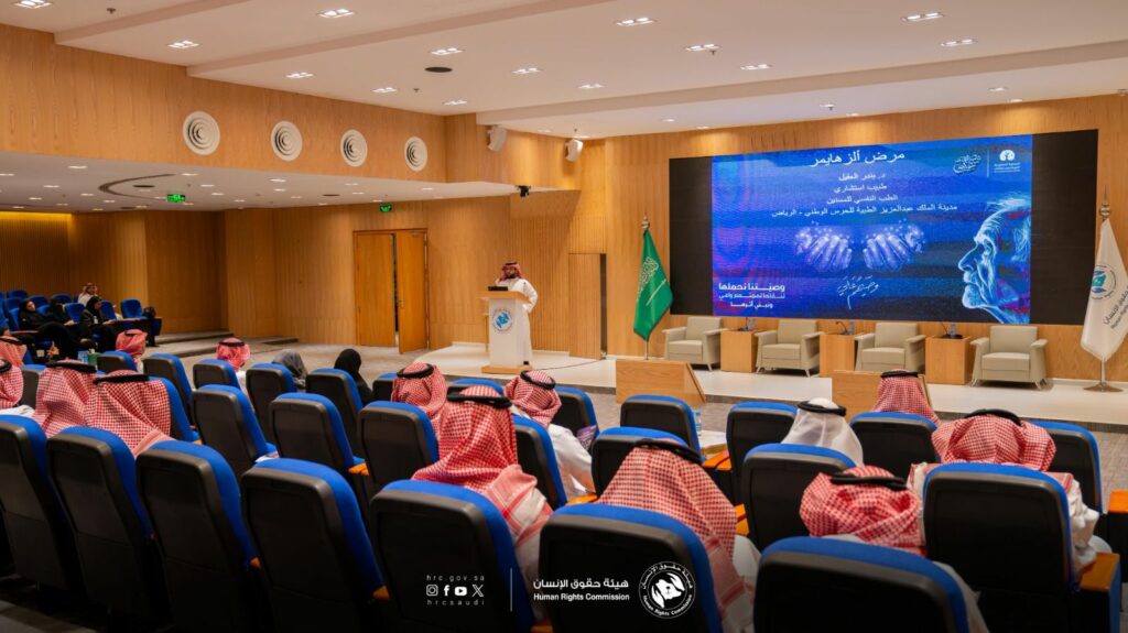 ففي إطار الشراكة الاستراتيجية مع القطاعات المختلفة نظمت الجمعية محاضره توعوية في هيئة حقوق الإنسان ألقتها الأستاذة رنا المرعي المدير التنفيذي للجمعية وتم التعريف بحملة الشهر العالمي لألزهايمر والريادة في تسليط الضوء على قضية وأبعاد المرض واستعراض مسارات التحول والتمكين لمشاريع الجمعية. وتحدثت الأستاذة ريناد المسيطير أخصائية التثقيف الصحي ورعاية المرضى وذويهم للجمعية وتحدثت عن آليات المشاركة في الحملة وأهمية تسليط الضوء على التوعية والتثقيف وجدولة المحاضرات الأسبوعية والورش والمبادرات المتنوعة. ثم سعادة الدكتور بندر العقيل استشاري نفسي في مدينة الملك عبدالعزيز الطبية تحدث عن ما هو الخرف وماهوا مرض ألزهايمر وطرق التعامل مع المريض. واختتمتها سعادة الأستاذة وفاء أبو بكر عن تجربة نجاح رعاية والدتها.