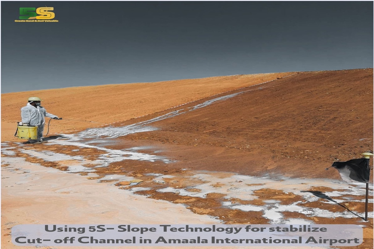 (5S) لحلول تثبيت الرمال والتربة تعتمد على مادة بوليمرية ذكية، تقوم بتكوين طبقة سطحية متماسكة فوق الرمال، تمنع تحركها بفعل الرياح، وتقلل من تطايرها نحو البنية التحتية.